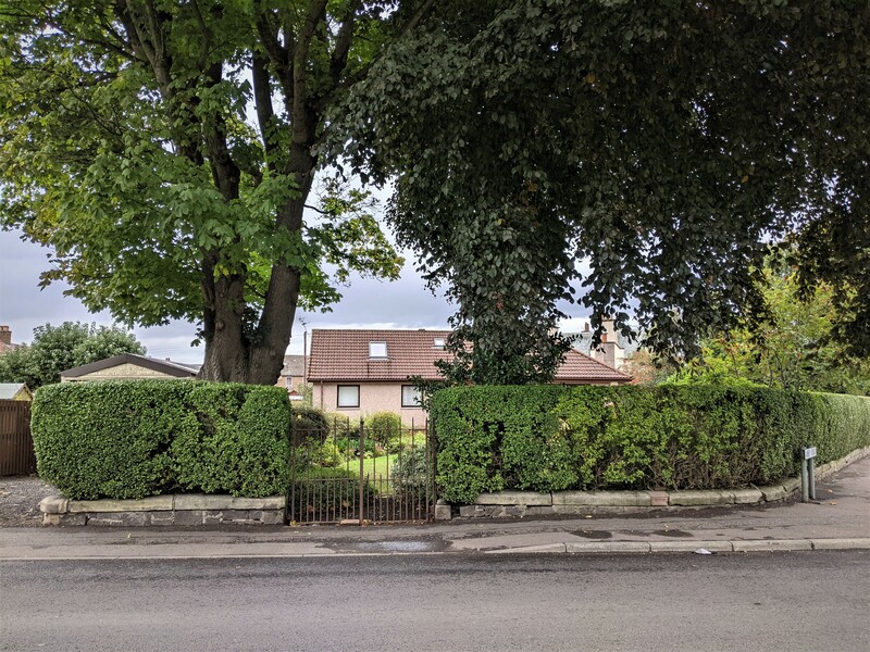 The site once occupied by St Katherine’s Episcopal Mission Church. The stone wall and iron gates are all that remain from the former church. (Source: Open Virtual Worlds / University of St Andrews)
